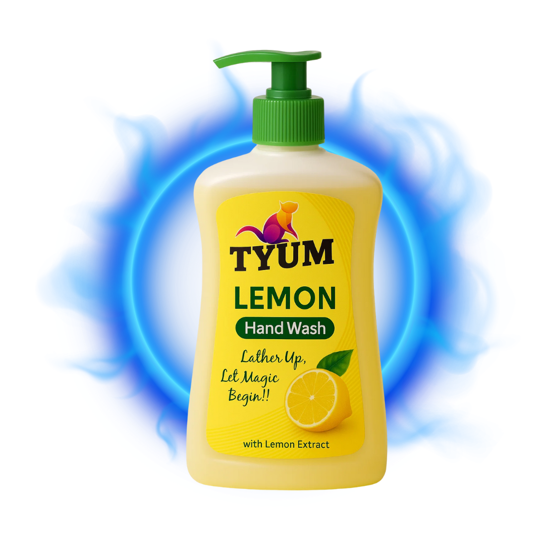 Tyum Lemon Handwash offers deep cleaning with a refreshing lemon scent. Removes grease, kills germs, and moisturizes skin—perfect for homes, kitchens, and hospitals.